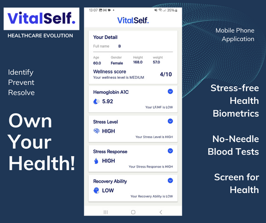 Our application - VitalSelf - is utilised for accessible assessments, within 60 seconds.